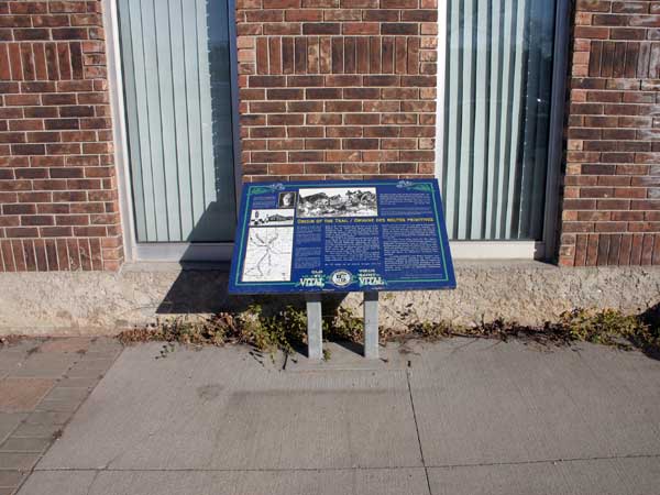 The old Crow Wing Trail has almost vanished but traces still remain—most notably near St. Pierre-Jolys. This St. Vital Historical Society plaque is located on the east side of St. Anne’s Road, near the beginning of the former trail.