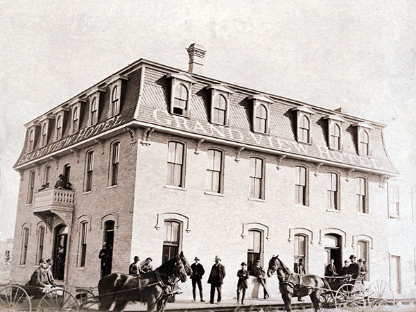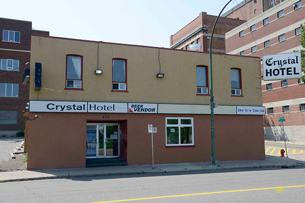 This two-storey brick building on Pacific Avenue in Brandon was constructed in 1882 as the Grand View Hotel, one of the city's first hotels. Sometime between 1938 and 1939, it was renamed as the Crystal Hotel.