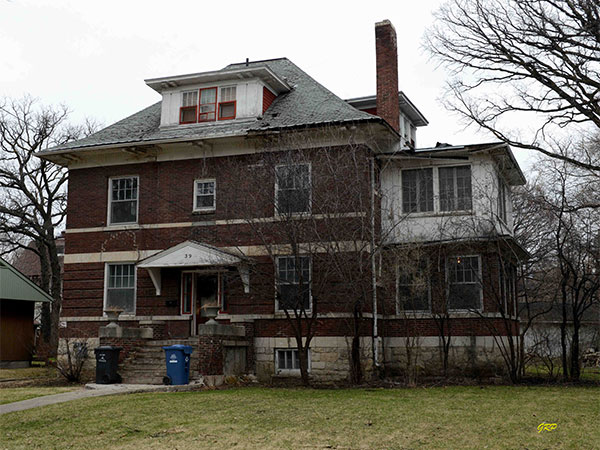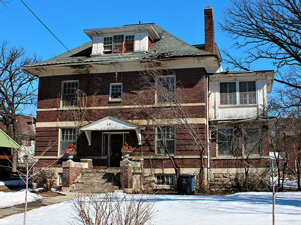This two-storey brick residence on West Gate in the Armstrong’s Point area of Winnipeg was designed by local architect David Wynyard Bellhouse and built in 1911 by contractor J. W. Simpson for realtor James G. Dagg. It was rebuilt after a major fire on 25 December 1925 and converted into a triplex in 1957. It was used as a rental property until 1997.