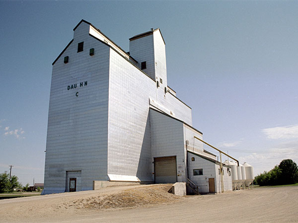 A wooden grain elevator at Dauphin on the CNR Gladstone Subdivision was built by Manitoba Pool Elevators in 1953. Known as “Pool C,” the facility was renovated extensively through 1978 and re-opened officially on 6 December 1978. Operated by Pool successors Agricore (1998-2001) and Agricore United (2001-2003), the facility was closed in 2003 as the Pool A elevator was enlarged. It was demolished sometime after August 2004.
