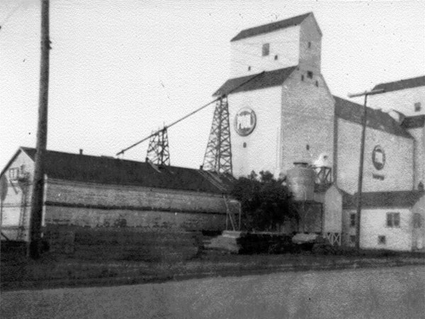Manitoba Pool grain elevator B and balloon annex with Pool A at right (no date)