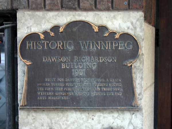 Dawson Richardson Building (171 McDermot Avenue), City of Winnipeg Historical Buildings Committee, January 2000.