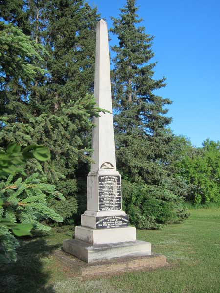 A monument at Dropmore in the Rural Municipality of Riding Mountain West was unveiled at a ceremony on 24 May 1920 to commemorate soldiers from the local area killed in the First World War.