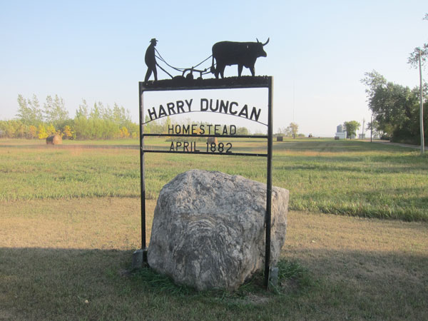 This monument in the Municipality of Boissevain-Morton commemorates the site where, in April 1882, a homestead was established by Harry Duncan.