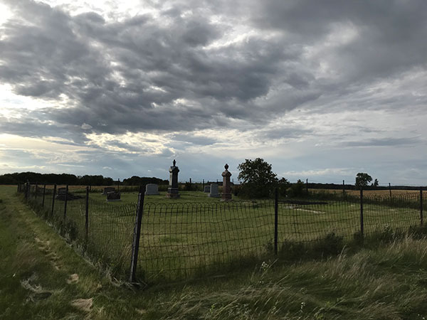The first burial in this private cemetery near Dunrea in the Rural Municipality of Prairie Lakes, operated by the Dunlop family, occurred in 1910.