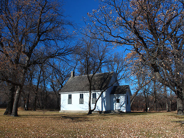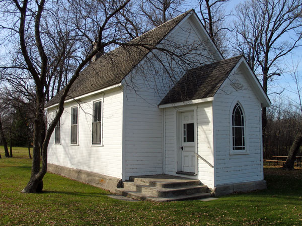 Inside this small church in the Rural Municipality of Thompson, built in 1895, is a plaque honouring those from the local community killed while serving in the military during the Second World War.