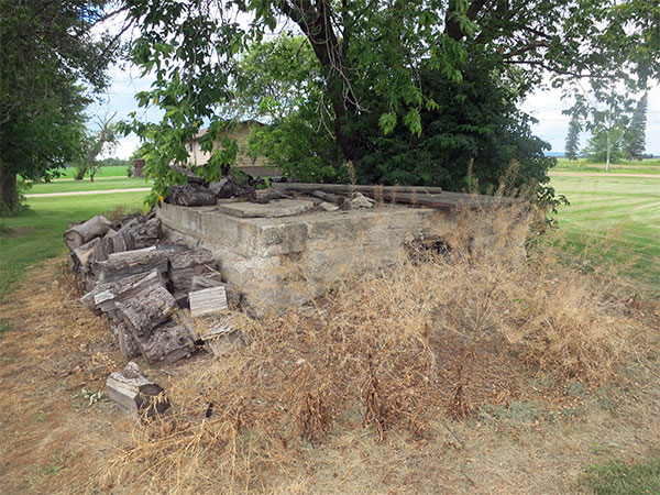 A concrete bank vault, partially buried in the ground, stands in the village of Durban in the Municipality of Swan Valley West. At one time, it was situated inside a Bank of Commerce on the village’s Main Street. The bank building was later used as a pool hall and then a general store. It was destroyed in fire in 1960. A mound of soil in front of the vault’s entrance was placed there by the municipality to dissuade children from playing inside.