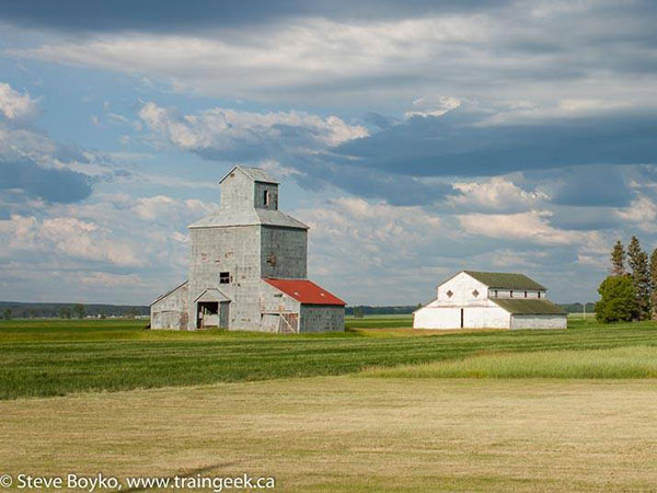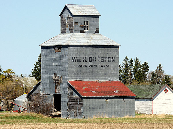 A small wooden elevator at SE14-24-19W in the Rural Municipality of Dauphin was built by local farmer William Henry Durston in 1917. The elevator is not in use and portions have fallen in the past few years.