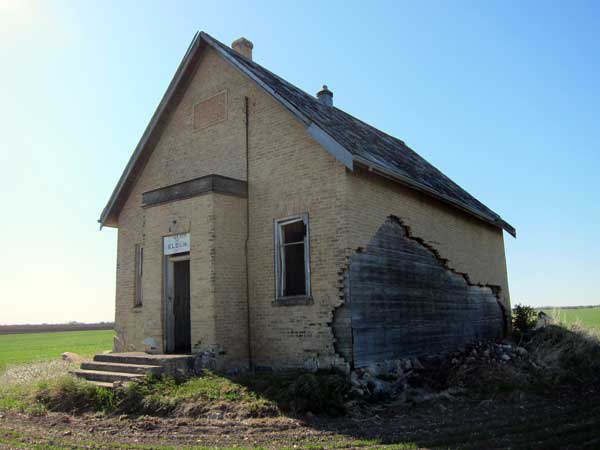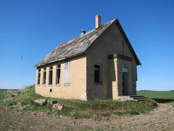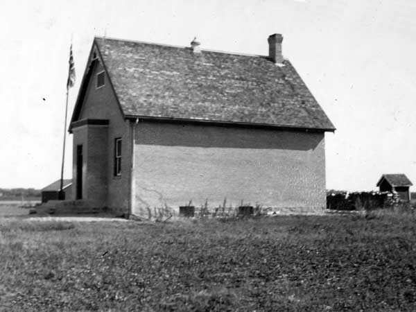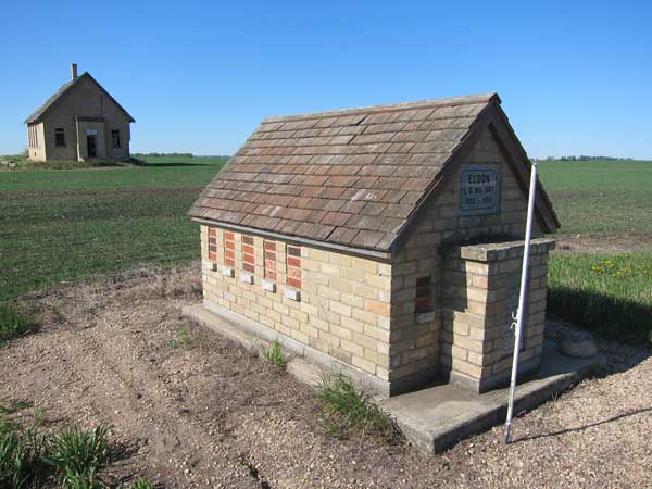 The Eldon School District was organized formally in December 1895 and a one-room log schoolhouse was erected at NW28-25-22W in what is now the Municipality of Gilbert Plains. In 1905, it was replaced by a brick-veneer structure. The school closed in 1961 and the district was dissolved the following year. The remaining students went to Brickburn Consolidated School. The building still stood as of 2012 although its exterior brickwork was extensively damaged. A small brick model was erected by former students in July 1992 using bricks from the school building.