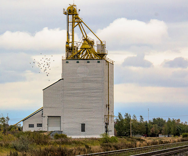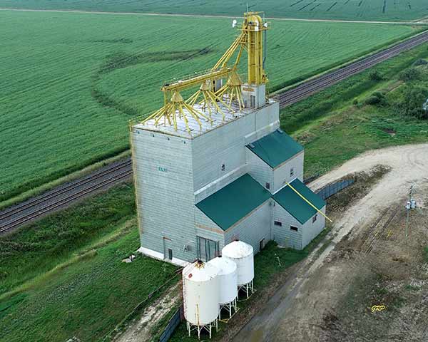 A 149,000-bushel wooden grain elevator near Elie, on the CNR Gladstone Subdivision in the Rural Municipality of Cartier, was built between October 1985 and October 1986 by the Manitoba Pool Elevators, and opened officially on 13 November 1986. Closed between 2001 and 2002, it was sold to a consortium of local farmers in 2004 and continues to be used for private grain storage.