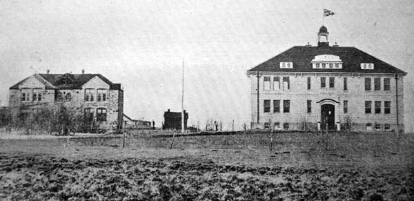 New Elkhorn High School on right with the old school at left (circa 1910)