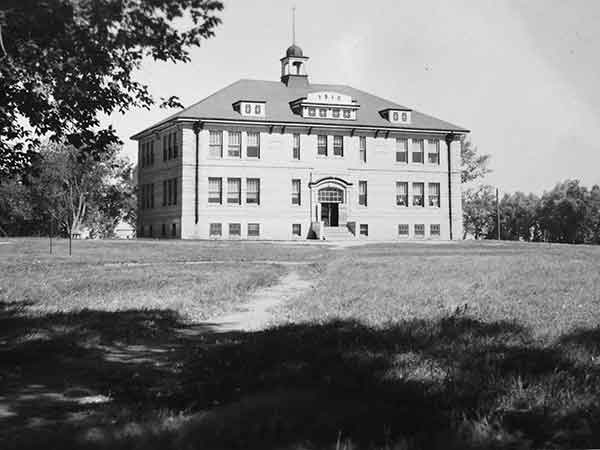 With growing enrollment, the stone school proved too small so, in 1910, a two-storey, six-classroom brick school was constructed beside it on a design by Brandon architect W. A. Elliott. The new building opened later that year, under Principal George Cecil Speers. An official opening ceremony was held 28 March 1911. Prior to school consolidation, classes included students from York School District No. 1783 and Reaper School. An adjacent collegiate building was built in 1959.
