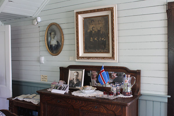 Situated at the northern terminus of the original Icelanders’ Road (Colonization Road), which connected the Icelandic River with Sandy Bar, Gimli, and areas further south, Engimýri became a stopping place for travellers and a haven of Icelandic hospitality. This meeting place was a vital part of the community and housed those travelling and working on the freighters travelling down Lake Winnipeg, mail carriers, and officials. This followed the tradition carried on by Tómas’ parents, whose home at Bakkasel in Öxnadalur served as a wayside inn. Tómas' brother, Sigtryggur Jónasson, also stayed at this house in the latter part of his life. It was subsequently occupied by Tómas' son and grandson of the same name. In 1977, Engimýri was designated a centennial farm.