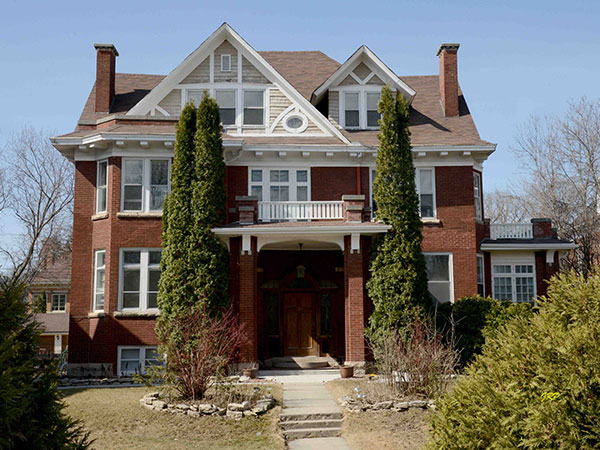 This two-storey brick house in the Crescentwood area of Winnipeg was designed by local architect Herbert B. Rugh and built in 1906 for George W. Erb.