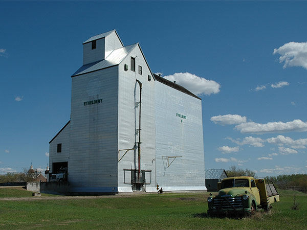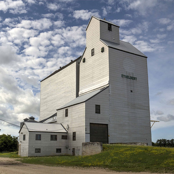 A wooden grain elevator at Ethelbert, on the CNR Cowan Subdivision in what is now the Municipality of Ethelbert, was built by the Manitoba Pool Elevators in 1967, replacing an earlier elevator bought by the company in 1954. An annex was built beside it in 1975. Closed in February 2001, the elevator is now used for private grain storage.