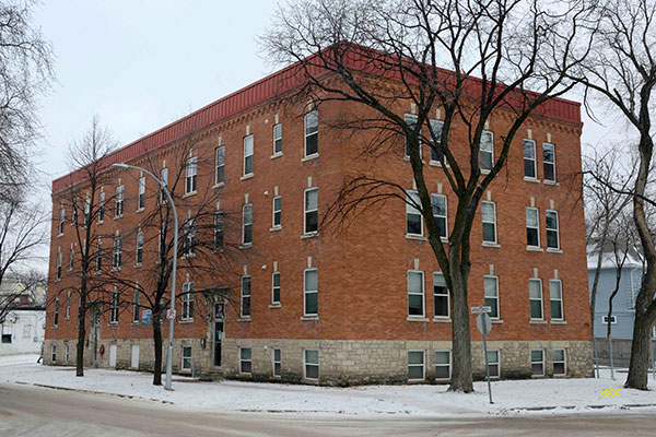This three-storey brick and stone block on Arbuthnot Street at the northeast corner of its intersection with Jessie Avenue in Winnipeg, measuring 90 feet by 46 feet, was designed by local architect Edmund Walter Crayston and built in 1912 by Hannes Pétursson. It contained 20 apartments in its original configuration. It contains 21 apartments today.