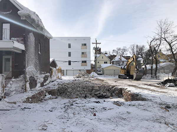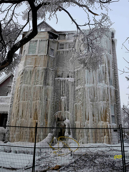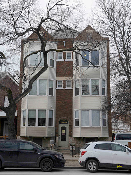 This three-storey brick block on Sherbrook Street in Winnipeg, measuring 31 feet by 106 feet, was designed by local architect Henry William Greene and built in 1914 by carpenter Frederick Hinds and a cost of about $44,500. The building contained 14 apartments in its original configuration. Known initially as Radisson Apartments, it was renamed Ferndale Apartments in the early 1930s. It was destroyed by fire on 31 December 2021.