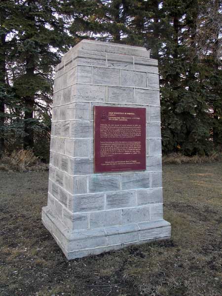 The monument was erected in 1956 by the Historic Sites and Monuments Board of Canada at a ceremony attended by Premier Douglas Campbell, Father Antoine d’Eschambault of the HSMBC, Reeve Lawrence Smith, and Frank Brydon of the Portage Fair Board.