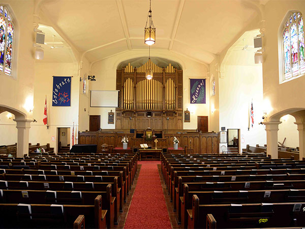 Interior of First Presbyterian Church in Brandon (July 2019)