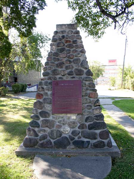 At various points in the sites past, the grounds have also hosted the Canadian Pacific Lawn Bowling Club (1925-?) and Ross House (1948-1984, since relocated to Joe Zuken Park). A surface parking lot greatly reduced the park’s area, now limited to the corner of land at Higgins Avenue and Maple Street. In 1925, a Historic Sites and Monuments Board of Canada cairn and plaque was unveiled in the park.