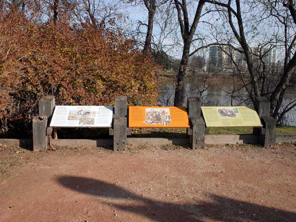 A group of three plaques located on the banks of the Red River in The Forks that describe the construction (1810) and destruction (1816) of Fort Gibraltar I of the North West Company, the Battle of Seven Oaks (1816) and early, post-contact life at the meeting of the Red and Assiniboine rivers.