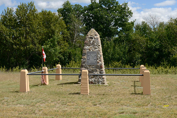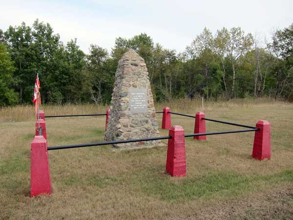 A fieldstone cairn in the Rural Municipality of Wallace-Woodworth, erected in the early 20th century by a group organized by lawyer Herbert Hanks Goulter of Virden, marks the approximate location of Fort Montagne a la Bosse (also known as Fort la Bosse), a trading post of the North West Company established about 1790. Overlooking the Assiniboine River valley, the original fort site was destroyed during extraction of gravel during construction of the Canadian Pacific Railway through the area.