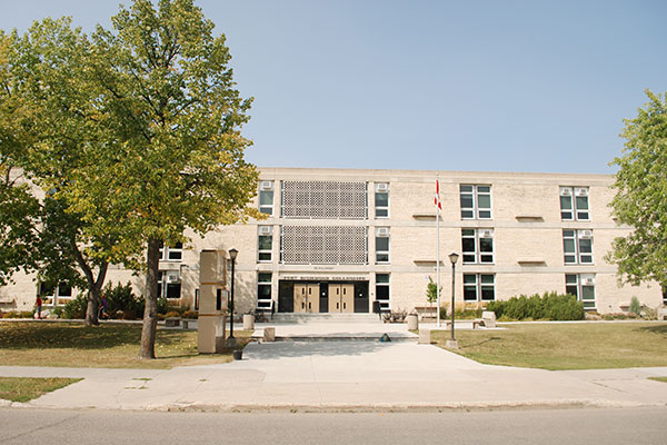 Designed by the Winnipeg architectural firm of Ward Macdonald and Partners, and built on Killarney Avenue in Fort Garry at a cost of $1,080,000, this three-storey school’s exterior was clad in limestone in contrast with brickwork commonly used in other Winnipeg schools. Centred around a circular library and threatre/lecture hall, some of the structure’s second and third floors walls had moveable partitions or walls made of concrete blocks that could be demolished to make way for larger classrooms. A half-basement also contained an indoor running track, purportedly the first in Canada.