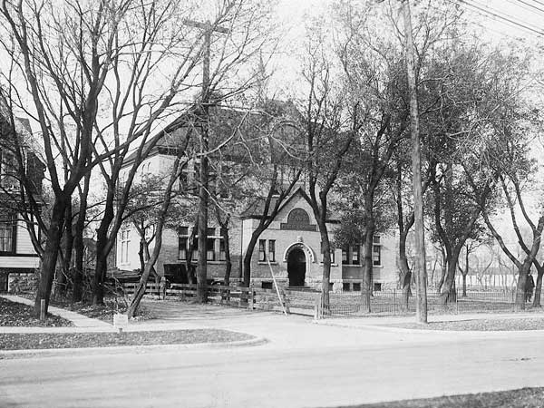 In the late 1880s, as Winnipeg’s population spilled across the Assiniboine River into the neighourhood of Fort Rouge, the need for a school became dire. In 1890, the Winnipeg School Board purchased land on River Avenue, bounded between Mayfair and Main streets, for a new school building. Designed by architect Walter Chesterton and constructed by contractor John Alexander Girvin between 1890 and 1891, the two-storey, four-classroom brick structure that became Fort Rouge School was situated intentionally at one side of the property to allow space for expansion as the need arose. This expansion was never needed. The school first opened to students on 5 October 1891, with three of four classrooms immediately filled to capacity. A fourth classroom was opened soon after. Completed at a cost of $10,800, the structure was heated by wood-fueled furnaces until its eventual demolition.
