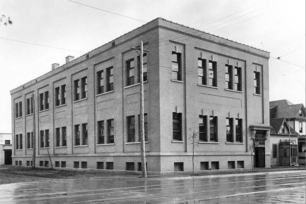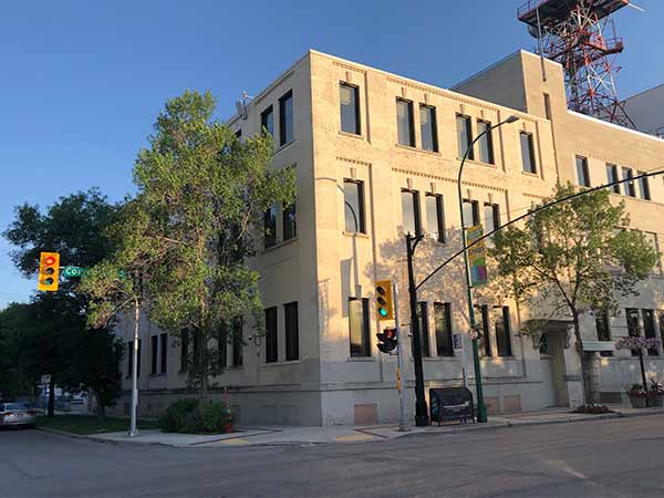 A large brick and stone building, at the southwest corner of Corydon and Daly Street (formerly John Street) in Winnipeg, was constructed in three phases.