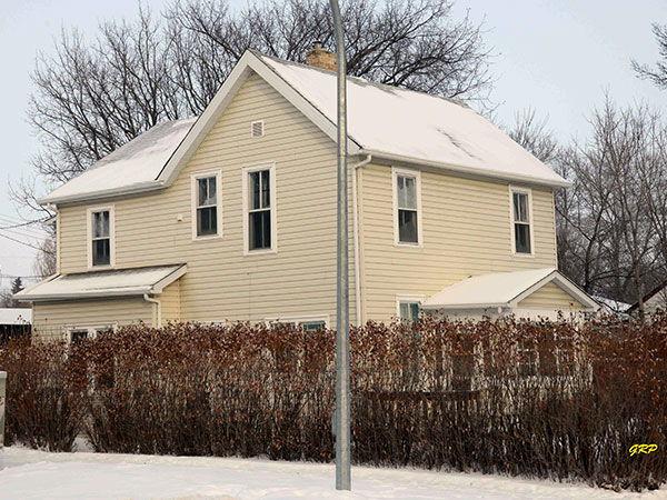 This two-storey residence on Eveline Street in Selkirk was built in 1892 for businessman William Fryer. Constructed of horizontal siding on a milled-wood frame, the structure is largely unaltered.