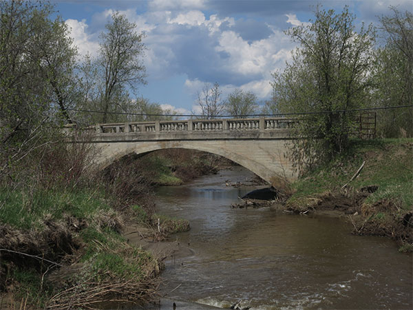Abandoned concrete arch bridge over the South Garland Creek (May 2014)