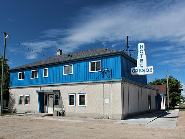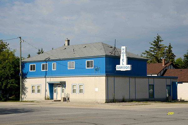 This two-storey frame structure in Garson, in the Rural Municipality of Brokenhead, was built in 1939 by businessman Louis Juravsky (1895-1957). It occupies the site of the previous Blue (general) Store built in 1914 by Mr. Tatalman, the town’s second postmaster (1916-1920). In 1963, Garson voted on a liquor referendum allowing alcohol to be sold in the hotel and allowing women to be present. In 1964, owner Steve Dureski added a mixed beverage room.