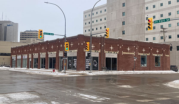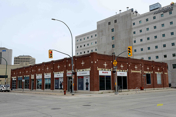 This one-storey brick buildingat the northeast corner of Fort Street and York Avenue in Winnipeg, measuring 125 feet by 126 feet, was designed by local architect Max Zev Blankstein and built in 1928 for owner A. Schwartz at a cost of about $25,000 as a truck dealership for General Motors. In the 1930s, the dealership also sold Chevrolet and Oldsmobile automobiles.