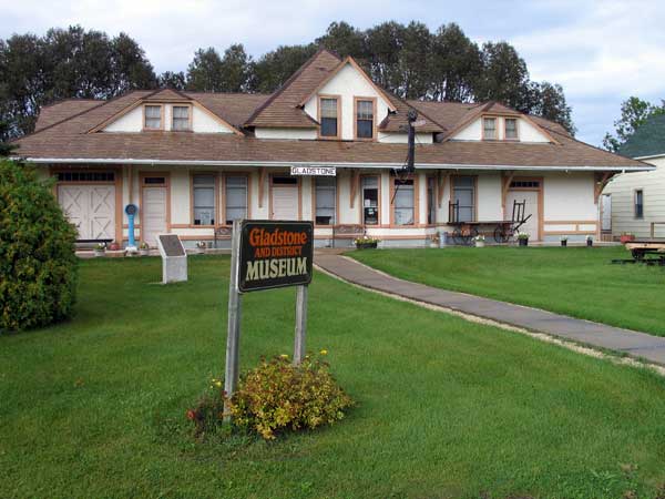 This museum in Gladstone was formerly a station building for the Canadian National Railway, built between 1901 and 1902. The building had a furnished dining room in 1903 that fed the passengers as there were no dining cars on the train in the early years.