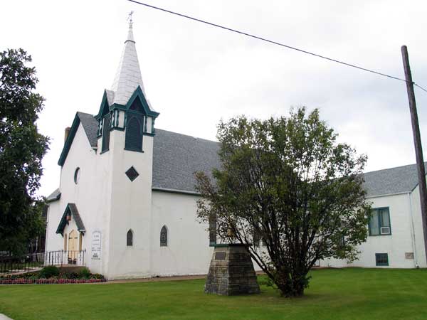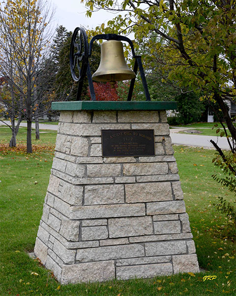 A monument standing by the church in Gladstone, erected in June 1966, is topped by a bell from an earlier Methodist church from 1877.