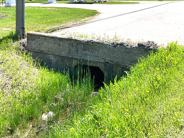 Concrete culvert bridge at cemetery entrance (May 2024)
