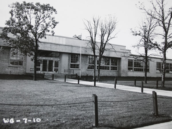 This facility began as the High School Department of Norberry School and moved to its present site in January 1950, occupying a building designed by local architect Ewart Fitz Munn. The 10-classroom facility was commissioned by the Glenlawn School District No. 1499 and built in 1949. It served as the home to all collegiate grades from those graduating from Fernwood School, Glenwood Sschool, Norberry School, Windsor School, and Woodlawn School, and was completed at a cost of about $125,000. On January 1950, the school was officially opened by Education Minister Charles Rhodes Smith.