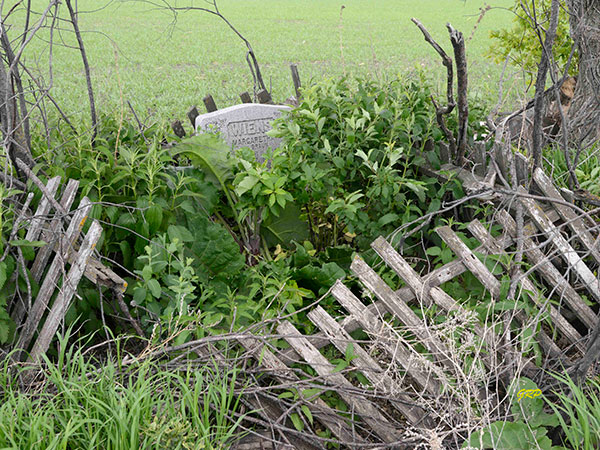 This small cemetery in a farmer's field was associated with the village of Gnadenfeld in the Mennonite East Reserve in the Rural Municipality of Hanover. It has one tombstone set up by later immigrants from Russia but the wooden markers from the earlier Gnadenfeld settlers are gone.