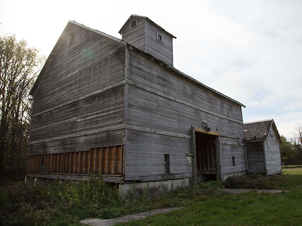 A small wooden grain elevator, dairy barn, and residence along St. Mary’s Road in Winnipeg were constructed around 1920 by dairy farmer George R. Gobert (1900-1975). The dairy was operated by the second generation until 1975 when the cattle were sold but the grain farm continued until 2008. The land was expropriated by the provincial government to enable construction of a high-speed intersection at the nearby Perimeter Highway and the elevator was demolished in July 2022.
