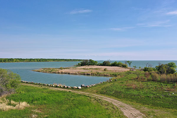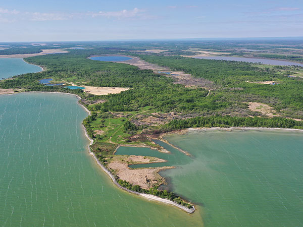 Aerial view of the former Good Harbour Fish Station on Lake Winnipegosis (June 2019)