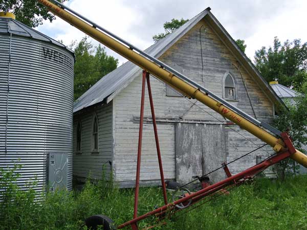 This former church building is situated in a farmyard at SE16-24-18W in the Rural Municipality of Dauphin.