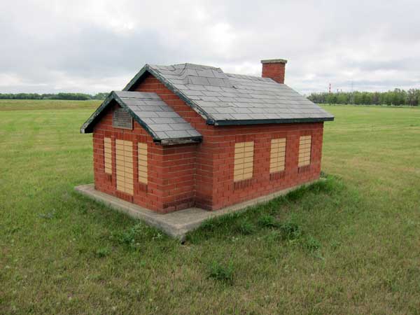 The Grand Valley School District was established around 1884, at the former town site of Grand Valley about two miles south of this location in the Rural Municipality of Cornwallis. By 1897, a brick, one-classroom school building was operating at this site. It was destroyed by fire in 1957. A brick replica was dedicated here on 13 July 1968, by members of the Grand Valley School Memorial Society.