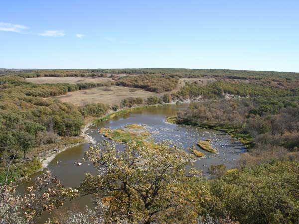 A view overlooking the Gregory’s Mill site from a hill to the northwest. The mill was about 20 metres up the bank at the right side of the photo, facing the small islands (no date)