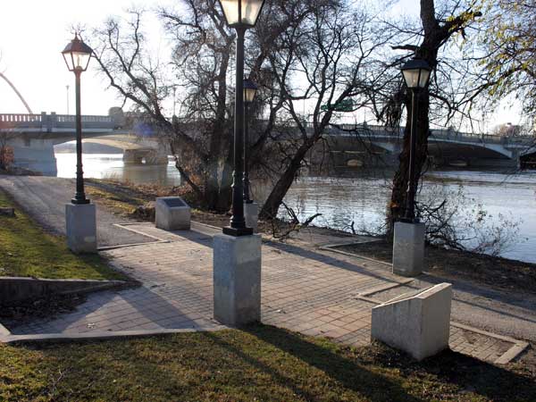 Located on the walking trail along the Red River behind St. Boniface Hospital and just north of the Norwood Bridge, this plaque describes the arrival, on 21 June 1844, of four Grey Nuns from Montreal, and their landing in front of St. Boniface Church, beginning their service as teachers, missionaries and nurses, roles that continue to this day throughout Western Canada.