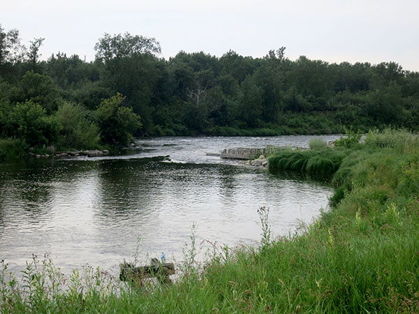 Remains of the wooden dam on the Little Saskatchewan River (July 2016)