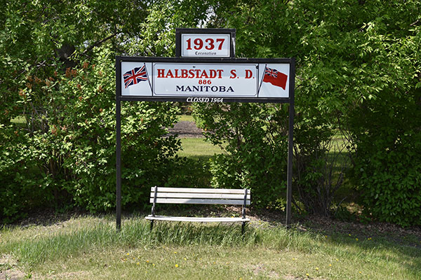 The name sign from the second Halbstadt School building was later erected at the site in commemoration of it.