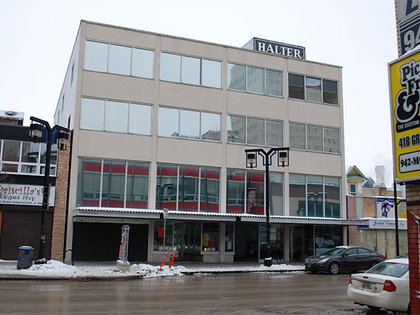 This three-storey building in Winnipeg along the north side of Graham Street, between Kennedy Street and Vaughan Street, is named for businessman Aubrey J. Halter. Built in 1960, the 15,000 square foot office and retail structure hosted the Macdonald’s Book Store owned by Halter’s wife Nola Perevette Brown (1928-1998, daughter of F. R. Brown). The bookstore, which opened on 9 December 1960, featured an array of arts, music, and cultural wares. Other commercial tenants in the building included footwear and bridal garment vendors. In 1987, the five-year old Women’s Health Clinic moved into the building.