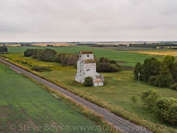 A wooden grain elevator at the railway siding of Harmsworth, on the CPR Rocanville Subdivision in what is now the Rural Municipality of Wallace-Woodworth, was built by W. W. King for the Lake of the Woods Milling Company of Winnipeg in 1910. It was sold to Manitoba Pool Elevators in 1960 and operated by the McAuley Pool Association until 1962 when it was closed and sold to private interests the following year. As of early 2016, it was still in use for private grain storage.