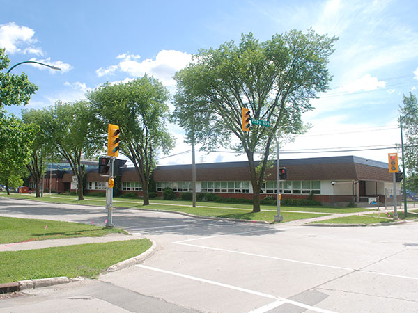 The land where this Winnipeg school sits was purchased in 1931 by the Manitoba Power Commission and used for its shops and storage facilities. A large metal building from the Transcona Cordite Plant was moved here in 1946. The land was sold to the Winnipeg School Board in 1952.