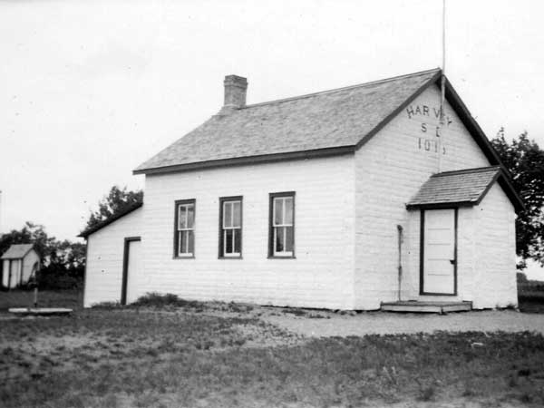 The Harvey School District was formally established May 1899, named for early local physician Dr. Harvey (?-1889), and a one-room school building was erected at NE6-10-23W in what is now the Rural Municipality of Wallace-Woodworth. The school opened in 1900 and it operated until 1943 when low enrollment caused it to close. It reopened from 1951 to 1958, closing permanently in the latter year. Its remaining students were bused to Oak Lake. The district was dissolved in January 1967. The building is no longer on the former school site, but a fieldstone monument unveiled on 21 July 1991 commemorates it.